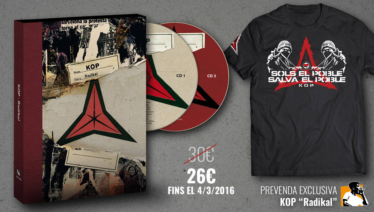 ‘Radikal’ en edició física a través de la nostra botiga online, tindreu ‘Radikal’ a casa abans no arribi a les botigues! Fins el 4 de març podeu triar un dels quatre formats que us oferim en exclusiva: format llibre+2xCD per només 18€, format llibre+2xCD i samarreta per 26€, format doble CD per 12€ o format doble CD + samarreta per 19€.