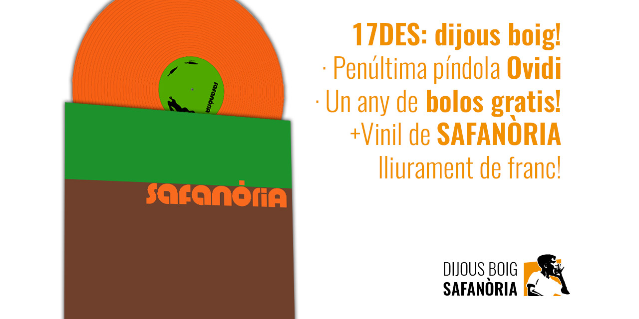 Fins les 23:59h d’avui, totes les comandes del vinil taronja de Safanòria que rebem, tenen l’enviament gratuït!